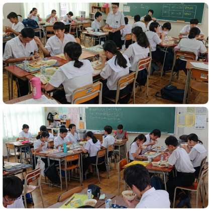 今日のメニューは、鶏肉のから揚げ、とうがんの中華スープ、切り干し大根のごま辛みづけ、パンと牛乳です。