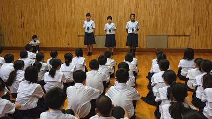 始めに、各クラスの女子委員長から、前期学級委員長を務めた感想やクラスのみんなへの感謝の気持ちなどについて、話がありました。