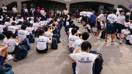 集合予定時間よりも早く全生徒が集合を終え、玉村先生から、入城前の注意がありました。