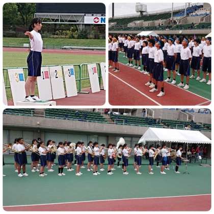 生徒代表の指揮、吹奏楽部の演奏で校歌を斉唱しました。