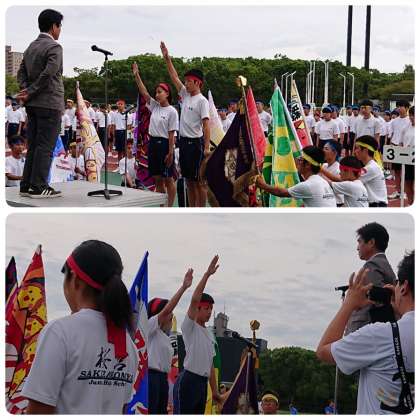 学校長、PTA会長挨拶、生徒代表挨拶に続いて選手宣誓です。