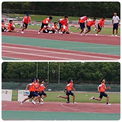緑のゼッケンが1年、青のゼッケンがが2年、オレンジのゼッケンが3年です。
