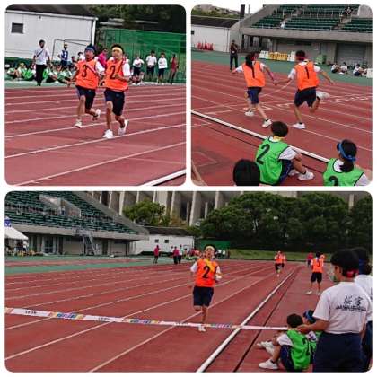 体育大会も終盤です。一人が100mを走り、男女6名でバトンを繋ぐ混合リレーです。