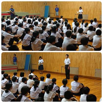 10月2日(水)、1年生は朝の学年集会を行いました。