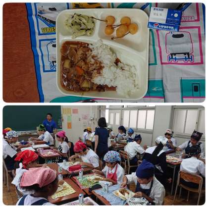 今日のメニューは、ハヤシライス、キャベツのひじきドレッシング、さくらんぼと牛乳です。