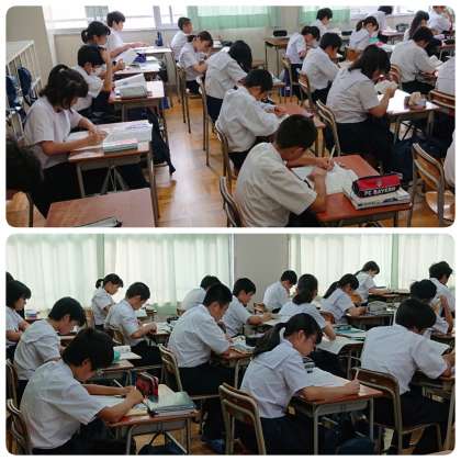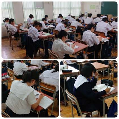 10月8日(火)、明日から始まる中間テストに向けて、どの学年も8時20分には自分の席につき、自主学習に取り組んでいました。