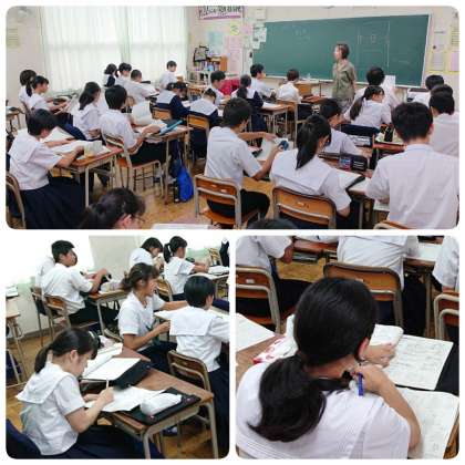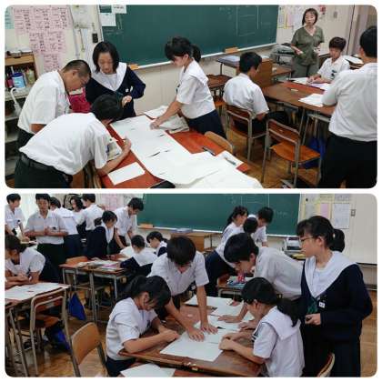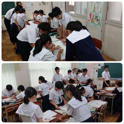 今日は、文化祭で展示する家庭科のレポート作品を繋ぎ合わせる作業を班で協力しながら行っていました。
