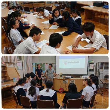 本校では2年生・12名が参加し、ColorbathのCEO・吉川さん、同CCOの椎木さんの指導により事前学習会を行いました。