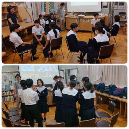 始めに、事業の概要について説明があり、続いて、コミュニケーションワークに取り組みました。吉川さんが子どもたちの緊張感をほぐしながら進行していただき、誕生日や血液型でグループに分け、自己紹介や将来の夢について英語も使いながらグループトークをしました。