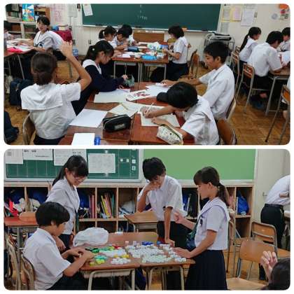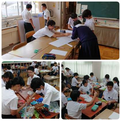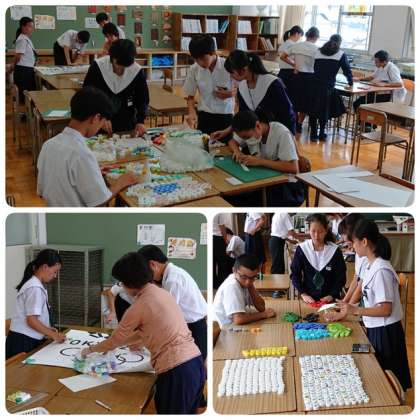 ペットボトルキャップアートの担当者は、教室や美術室で作業に取り掛かりました。