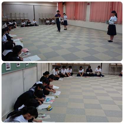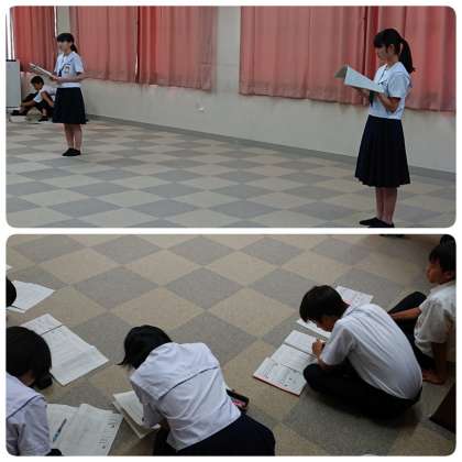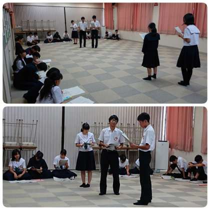 劇のキャストと照明・音響担当は音楽室で川西先生の指導のもと、練習開始です。