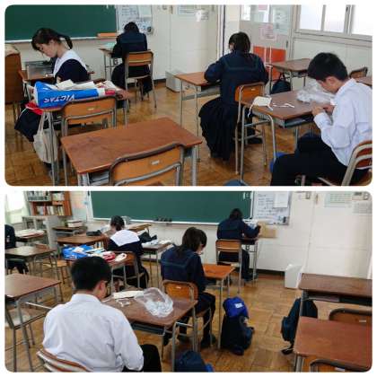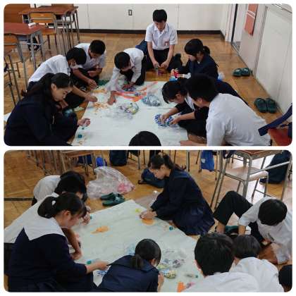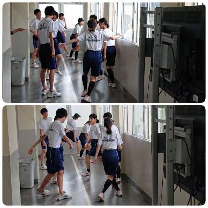 10月18日(金)5時間目、各教室では展示物、大道具・小道具の作成に取り組んでいました。廊下ではダンスチームがChika-Jさんに作っていただいた振付の動画を見ながら練習に取り組んでいました。