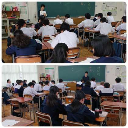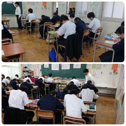 10月19日(土)2時間目、2年2組の数学の授業では角度の性質について、2年3組の国語の授業では古典・敦盛の最期について学習していました。