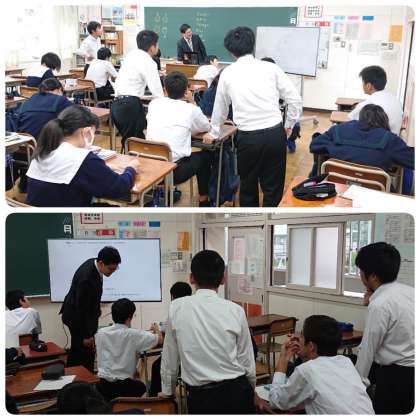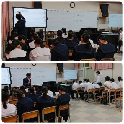 10月19日(土)2時間目、3年1組の数学の授業では論理パズルの問題をみんなで解いていました。3年2組の音楽の授業では自分たちの課題を考えながら合唱曲に取り組み、3年3組の理科の授業では自由落下をテーマに学習していました。