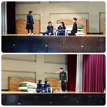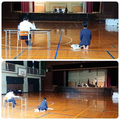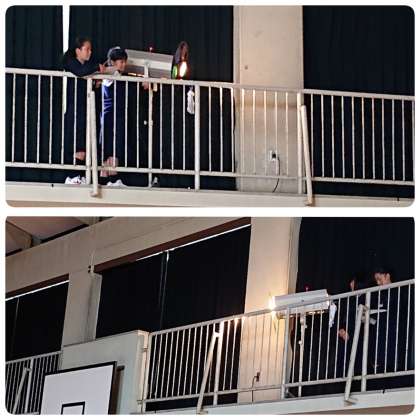 10月19日(土)3時間目、舞台チームは体育館で練習です。山口先生、玉村先生の指導のもと、照明、音響の確認もしながら練習に取り組んでいました。