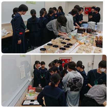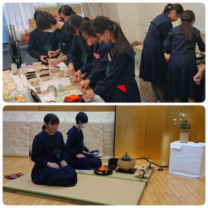 10月19日(土)、大阪市立鶴見区民センターで大阪市立中学校総合文化祭が開催され、14時50分から1時間、本校の茶華道部がお点前を披露しました。