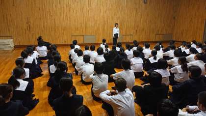 角田先生の指揮で整列を完了し、委員長の代表による司会で学年集会が始まりました。
