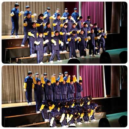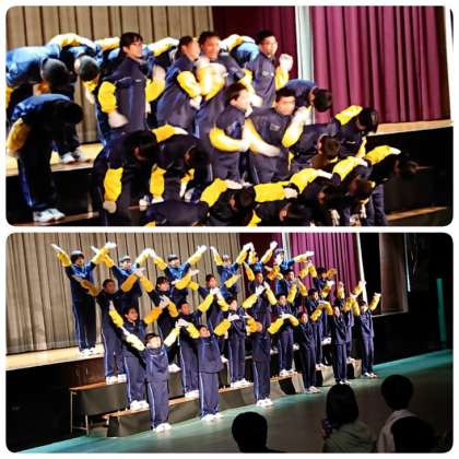 練習の成果を発揮し、1年生は息の合ったダンスを披露してくれました。「あきらめないでどんな時も 君なら出来るんだどんな事も…」歌詞のフレーズが強く心に残りました。ラインダンスチームが爽やかな風を吹かせてくれました。