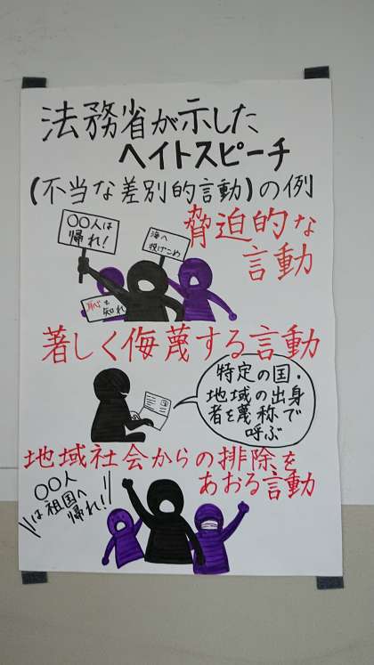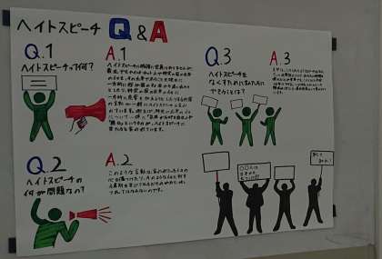 劇中に取り上げた「ヘイトスピーチ」について学習し、わかりやすくまとめて掲示しました。