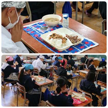 11月6日(水)、1年生の給食の様子です。