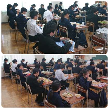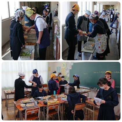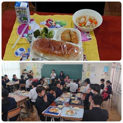 今日のメニューは、白身魚のフリッター、スープ煮、ブロッコリーのサラダ、パンと牛乳です。
