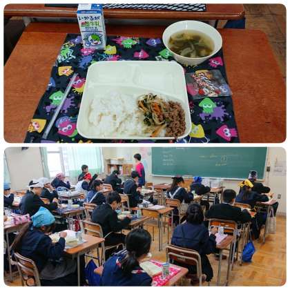 11月14日(木)、1年生の給食の様子です。
