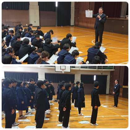 今日から3年生は進路懇談が始まりました。2年生も、1年後には進路選択を迫られます。自分の夢の実現のために、今から進路のことについて考え、準備を進めてください。大切なことは、自分をしっかりと見つめ、自分を活かせる進路選択ができることです。そのために毎日の授業を大切にし、基礎基本をしっかりと身につけていってください。