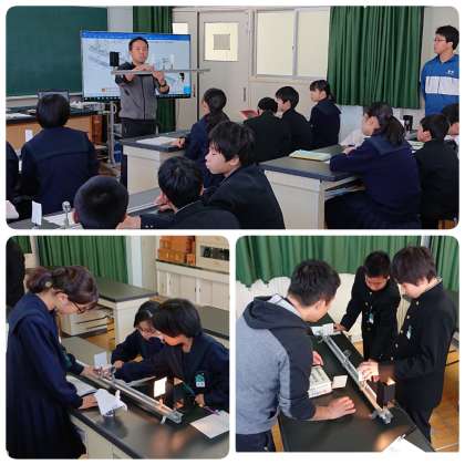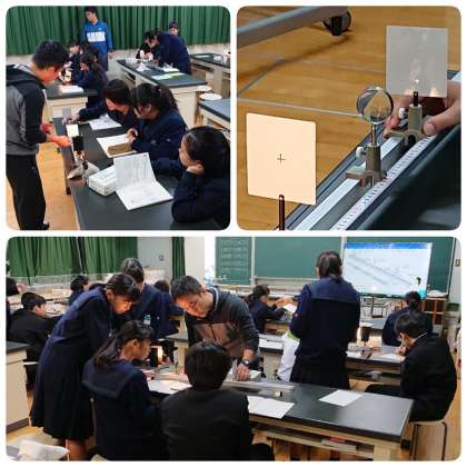 第2理科室で「凸レンズのしくみ」の学習です。凸レンズによってできる像を観察しながら、凸レンズを通った光の道筋について調べる実験を行っていました。