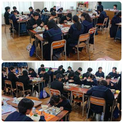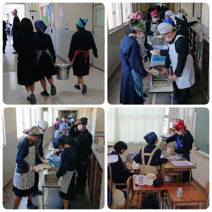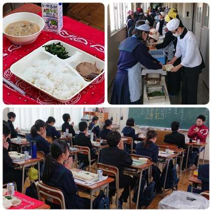 今日のメニューは、なまり節のしょうが煮、みそ汁、ほうれん草のおひたし、焼きのり、ごはんと牛乳です。