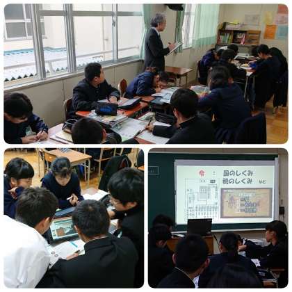 11月25日(月)5時間目、1年2組の社会の授業の様子です。