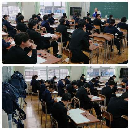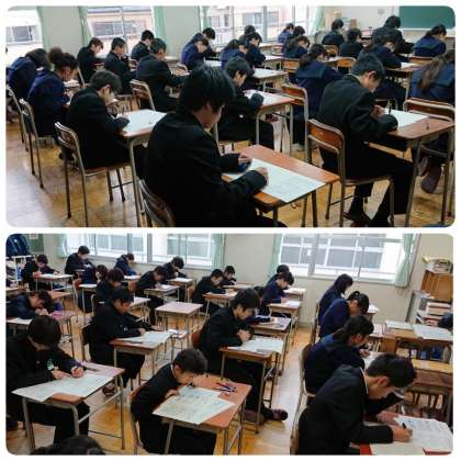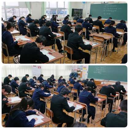 1時間目、2・3年生は社会、1年生は英語のテストから始まりました。
