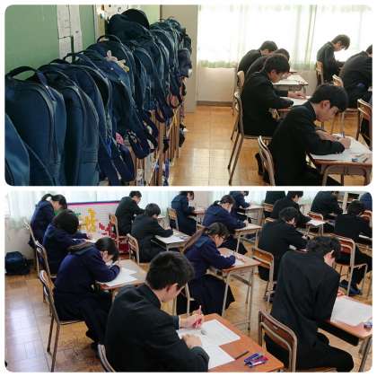 今日は、全学年、数学・保健体育の順に行われ、2時間で終了です。
