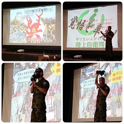地域を守りたい、国を守りたいという強い思い、自衛隊として災害救助の最後の砦としての使命感など、強い思いが子どもたちにも伝わり、真剣なまなざしで話に聴き入ってました。