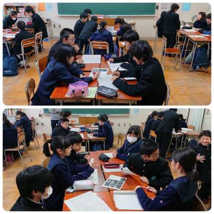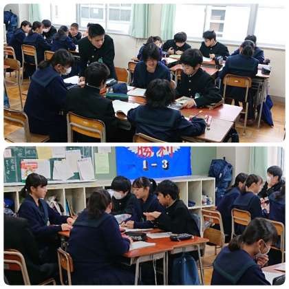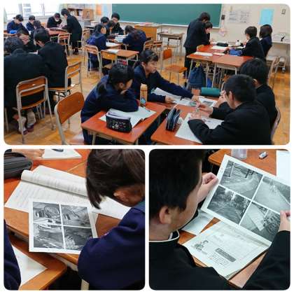 教室では、11月13日(水)にタブレットで撮影した写真を見ながら、わが町「京橋」のバリアフリーの状況や、障がいのある方にとって住みやすい環境になっているのか、発表内容を各班で話し合いながら考えていました。