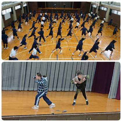 12月5日(木)3時間目、心斎橋のダンススクール「スタジオAX」による1年ダンス出前授業の2日目です。