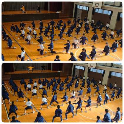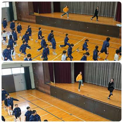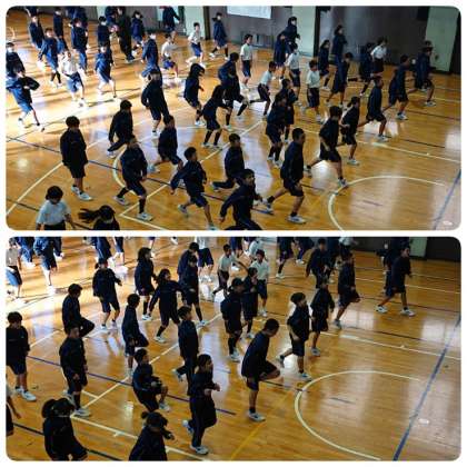 1年生も、いろいろな動きを次々とマスターしていきました。これまで学習して来たルーティーンをとおして、音楽に合わせて踊りました。