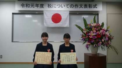 12月12日(木)午後3時20分より、旭税務署において「税についての作文」の表彰式が行われ、本校から3年生2名の生徒が表彰されました。