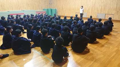 学年主任の江野先生から2学期の学校生活を振りけり、授業の大切さについて話がありました。