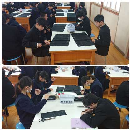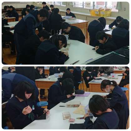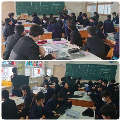 12月19日(木)1・3時間目、1年3組の家庭科の授業の様子です。