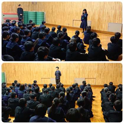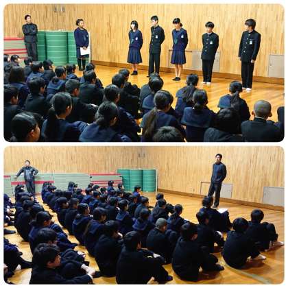 1月8日(水)、1年生は朝の学年集会を行いました。