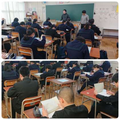 1月9日(木)、1・2年生は大阪府教育委員会が実施する「中学生チャレンジテスト」です。