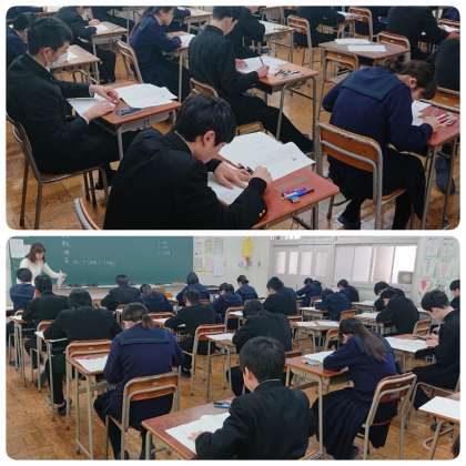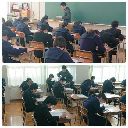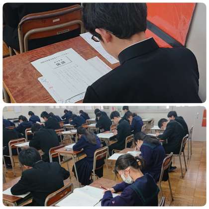 2年生は、2時間目から社会、数学、理科、給食を挟んで5時間目に英語のテストを行います。1年生は、2時間目に数学、3時間目に英語のテストを行い、4・5時間目は大阪市教育委員会が今年度から取り組む「大阪市版チャレンジテストplus」の社会・理科のテストを行います。