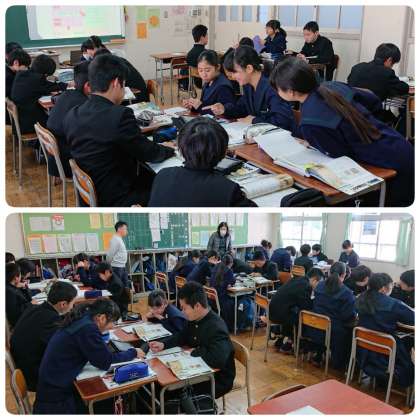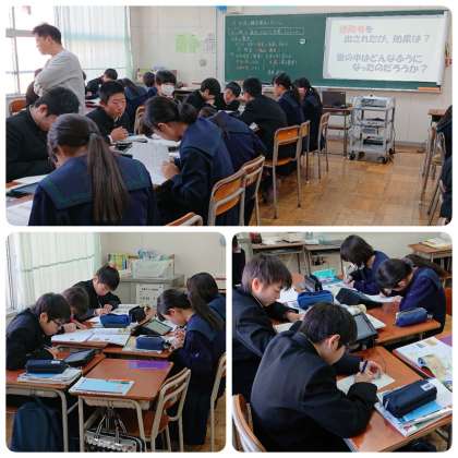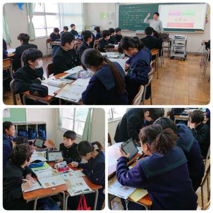 1月14日(火)1時間目、1年1組の社会の授業の様子です。