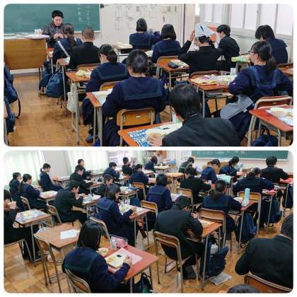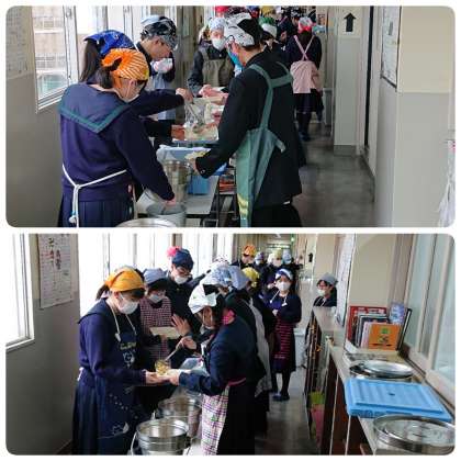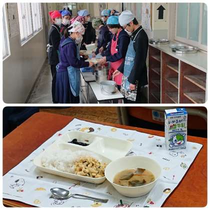 今日のメニューは、親子丼、みそ汁、黒豆の煮物と牛乳です。
