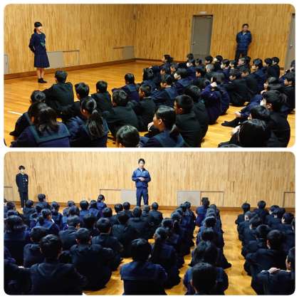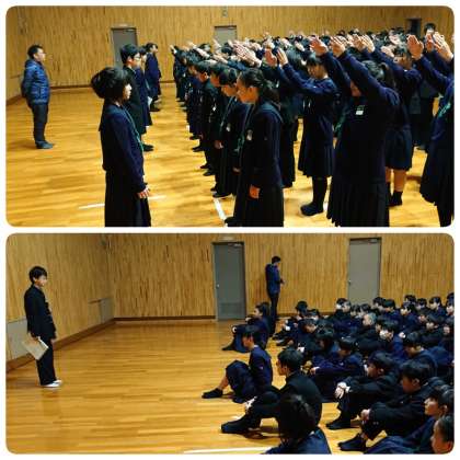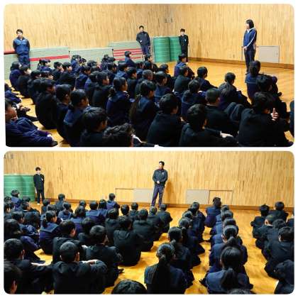 1月15日(水)、1年生は朝の学年集会を行いました。