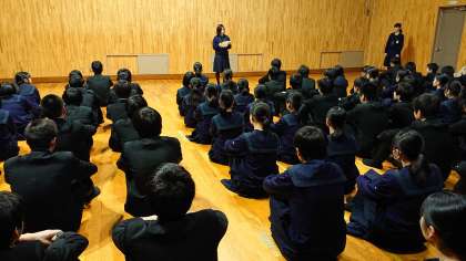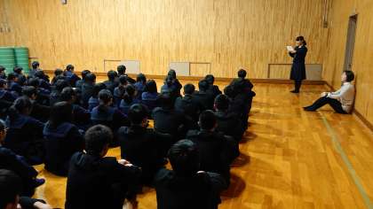 1月17日(金)、3年生は朝の学年集会を行いました。