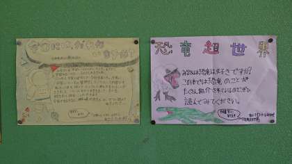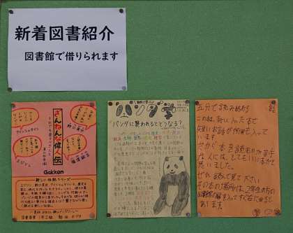 3階エレベーターホール横の掲示板に、1年生の図書委員の皆さんが、図書館で借りられる新着図書を紹介してくれています。ぜひ、読んでみてください。