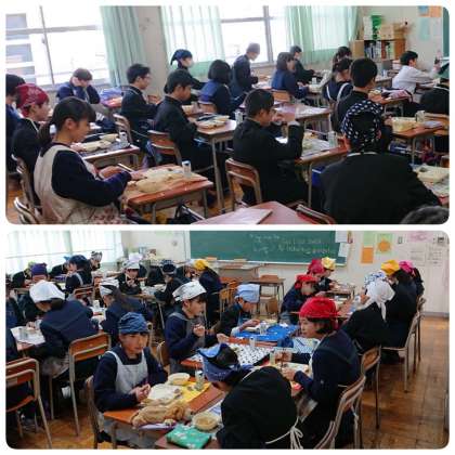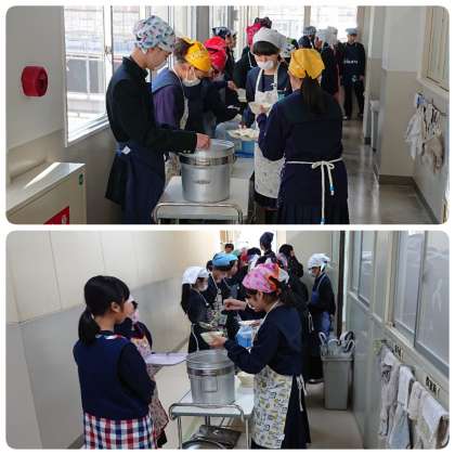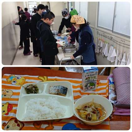 今日のメニューは、さごしのしょうゆだれかけ、みそ汁、みずなの煮ひたし、ごはんと牛乳です。