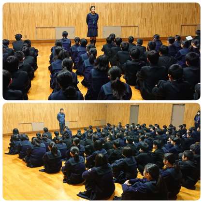 1月15日(水)、1年生は朝の学年集会を行いました。