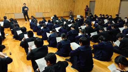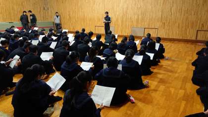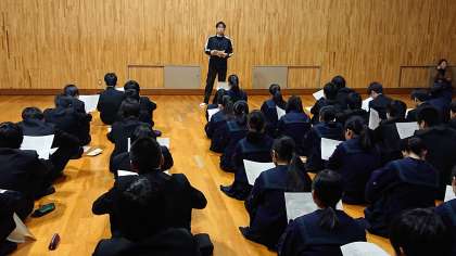 1月22日(水)5時間目、3年生は武道場で私立高校出願に向けた事前指導を行いました。